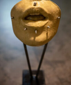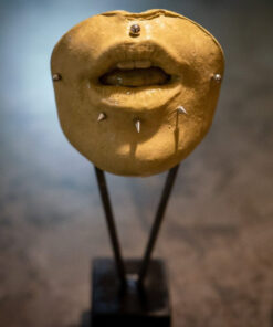 Facial piercing jewelry display featuring lifecast female face with open mouth