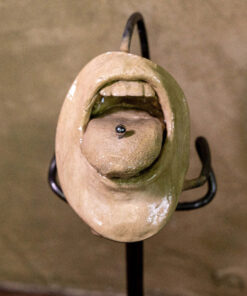 The lifecast female mouth is made of high density plaster, and has been hand painted and coated in polyurethane.