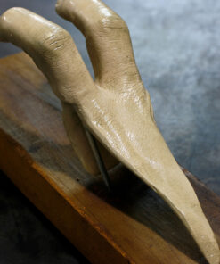 The lifecast male fingers are made of dental stone (a type of extra hard plaster), and have been hand pained and coated in polyurethane.